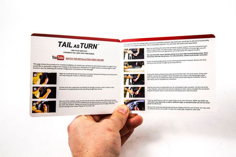 Features Converts your tail light to also function as the turn signal. OEM tail light connectors for simple plug-and-play installation. Assembled in USA. Overview Custom Appearance. This kit is compatible with Scion FR-S/Subaru BRZ 2013-2016 and will convert the LED tail light to also function as the turn signal. This kit will instantly customize your vehicle for a much more modern appearance on the road! This module does not include the option to convert your old turn signal location into additional backup lights. Easy Installation. Using OEM tail light connectors, the base kit is 100% plug-and-play and installs in minutes, with no wiring required. You don't even have to remove your tail lights! Experience. After over a decade in business, Diode Dynamics is the most trusted name in automotive LED lighting. Unlike every other LED distributor, we assemble and engineer products ourselves in the United States, for high quality and fast time-to-market of the newest and brightest LED technologies. We pride ourselves in offering only quality LED products that will exceed your expectations. Please contact us if you'd like to discuss your lighting project! What's Included Two (2) modules compatible with Scion FR-S/Subaru BRZ 2013-2016 One (1) Installation Guide